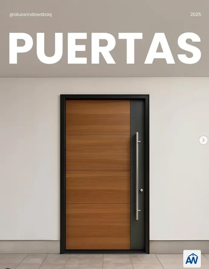 - Si prefieres un estilo más cálido y natural, puedes optar por nuestro acabado tipo madera, que combina la belleza de lo rústico con la modernidad del aluminio.